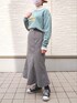 ご覧いただきありがとうございます! チョコミントカラーのギンガムチェックマーメイドスカートの着回しコーディネートです。 大好きなYouTuber"なつめさんち"のオムライスの群れトレーナーにシアータートルネックを合わせました。 スニーカーは黒でもオフホワイトでも可愛い! Leeのオフホワイトスニーカーはサイドのラインが可愛くて、チチカカのブラックスニーカーはバックのポイントカラーが可愛いスニーカーです♪