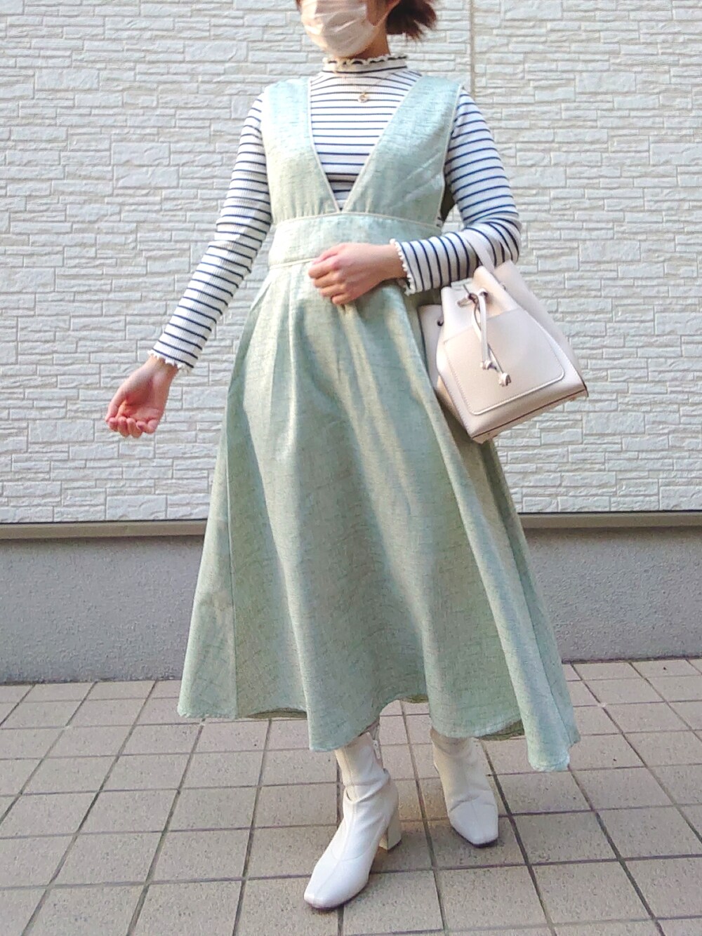 ご覧いただきありがとうございます! Green Pearksのジャンパースカートの着回しコーディネートです。