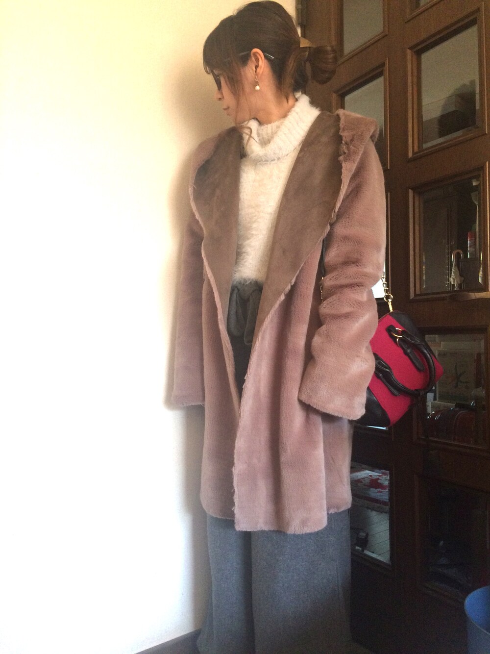 こないだ買ったばかりのワイドパンツ◡̈アンクル丈だけど小さい私には丁度いい! 今年こそもこもこアウター買おうと思ってたらアーバンリサーチのがリバーシブルだったことを思い出しました◡̈ それにしても寒い!! 風も強いので伊達メガネでコンタクト守る!