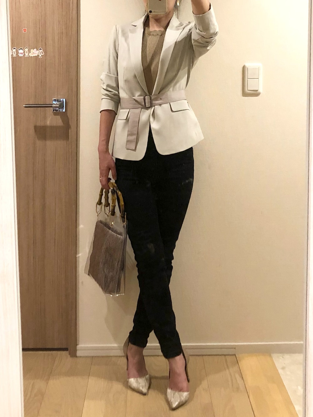 一度やってみたかったジャケットごとベルトでまきまき🐚 GUのジャケット、淡いあわーいグリーンがかわいく馴染む😆 いつもありがとうございます‼️ お返しできる時に伺います🙂
