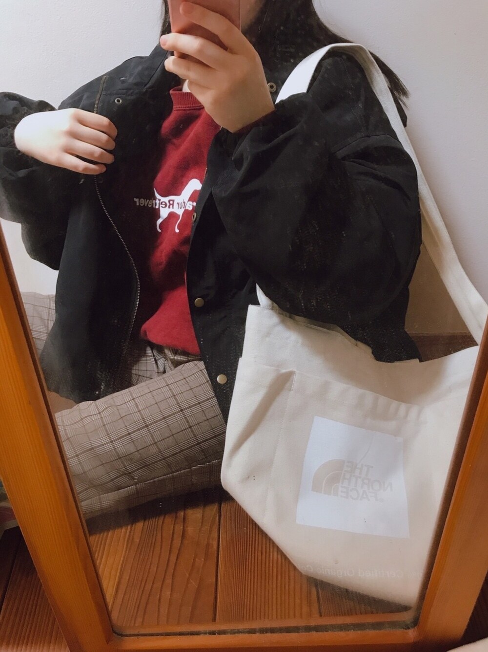 見てくださりありがとうございます♬︎ 母からもらった古着を生かしたコーデ🐕 今日は寒いので少し暖かい格好をしてみました !! ✎*pair pairマウンテンパーカー 去年修学旅行のために購入しました。 冬はこれしか着なかったくらい愛用しました😂 アウターは黒で締めないと落ち着かない人なのでほんとにお世話になった服です^^* ✎*Honeysテーパードパンツ これも修学旅行のために購入したものです。 このズボンは「ハニぽか」というシリーズだそうで、裏生地が暖かく作られています☺️ しかも動きやすい !! ヒップが気になる私でもきれいに履けました*ˊᵕˋ* ✎*North Face ショルダーバッグ ポケットがたくさんあってとても便利です♪ マチ付きで、教科書などもたくさん入ります✨ 他にも黒、赤、緑、青、グレーがあり、カラバリ豊富です🤹♀️