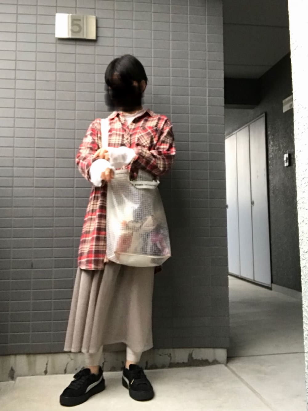 ミネのショルダーバッグ「beautiful people ビニールショルダーバッグ」を使ったコーディネート