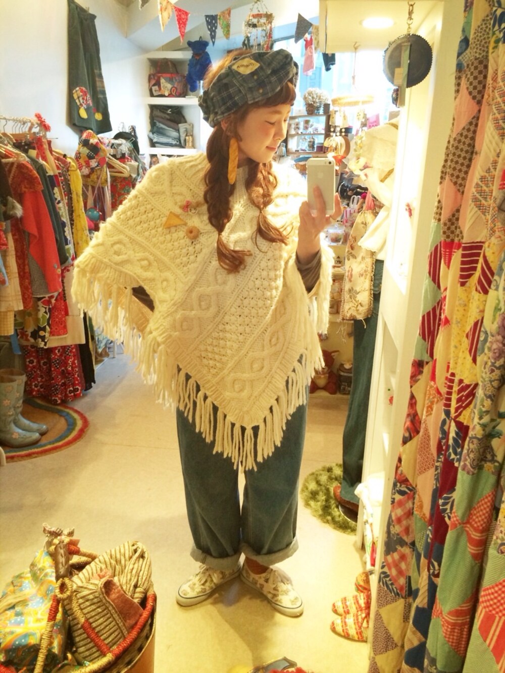 ・ポンチョ・・・古着 ・オーバーオール・・・小学生から履いてる ・くつ・・・VANS ・ヘアターバン・・・MOMApatchwork ・耳飾り・・・yummy mart. 毎年このポンチョ着ると、 寒くなったなぁ〜と感じる(◍•̅ ȷ̫ •̅◍) 耳にはフランスパン。 胸元にはフレンチトーストと ベーグル。 パン好きなん?って聞かれるけど どっちかというと白いご飯が好きです。(^ω^)