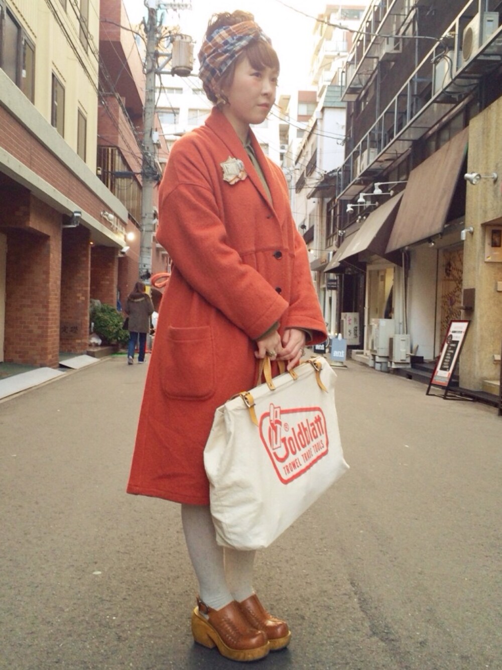 ・ターバン・・・MOMA ・コート・・・SM2 ・カバン・・・ヴィンテージ ・サボ・・・ヴィンテージ オレンジ×白の日。 見えてないけど、中にはグランパシャツをワンピースにして着ています\( ˆoˆ )/♫