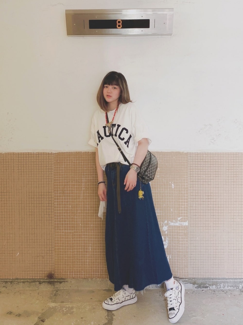 puiamanw821のTシャツ/カットソー「NAUTICA/ノーティカ “TOO HEAVY” Arch Logo S/S Tee/トゥーヘヴィー アーチロゴショートスリーブTシャツ/ワッペン Tシャツ」を使ったコーディネート