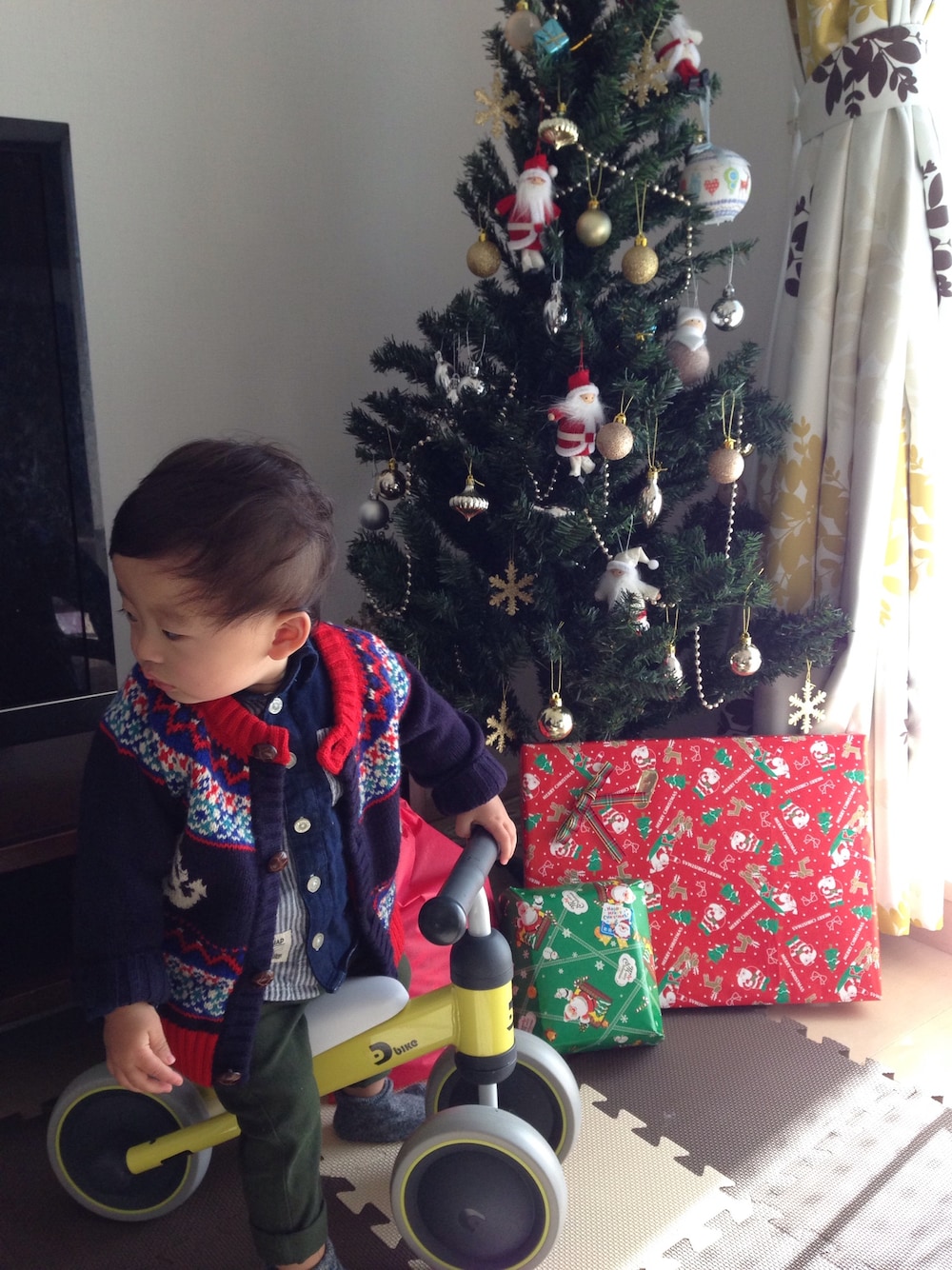 メリーぷいすます☺︎ サンタさん迷ったけど安全なこちらの三輪車にしたようです。 かっこいいのはまた来年かなぁ~😆 絵本や洋服たくさん貰って良かったね~