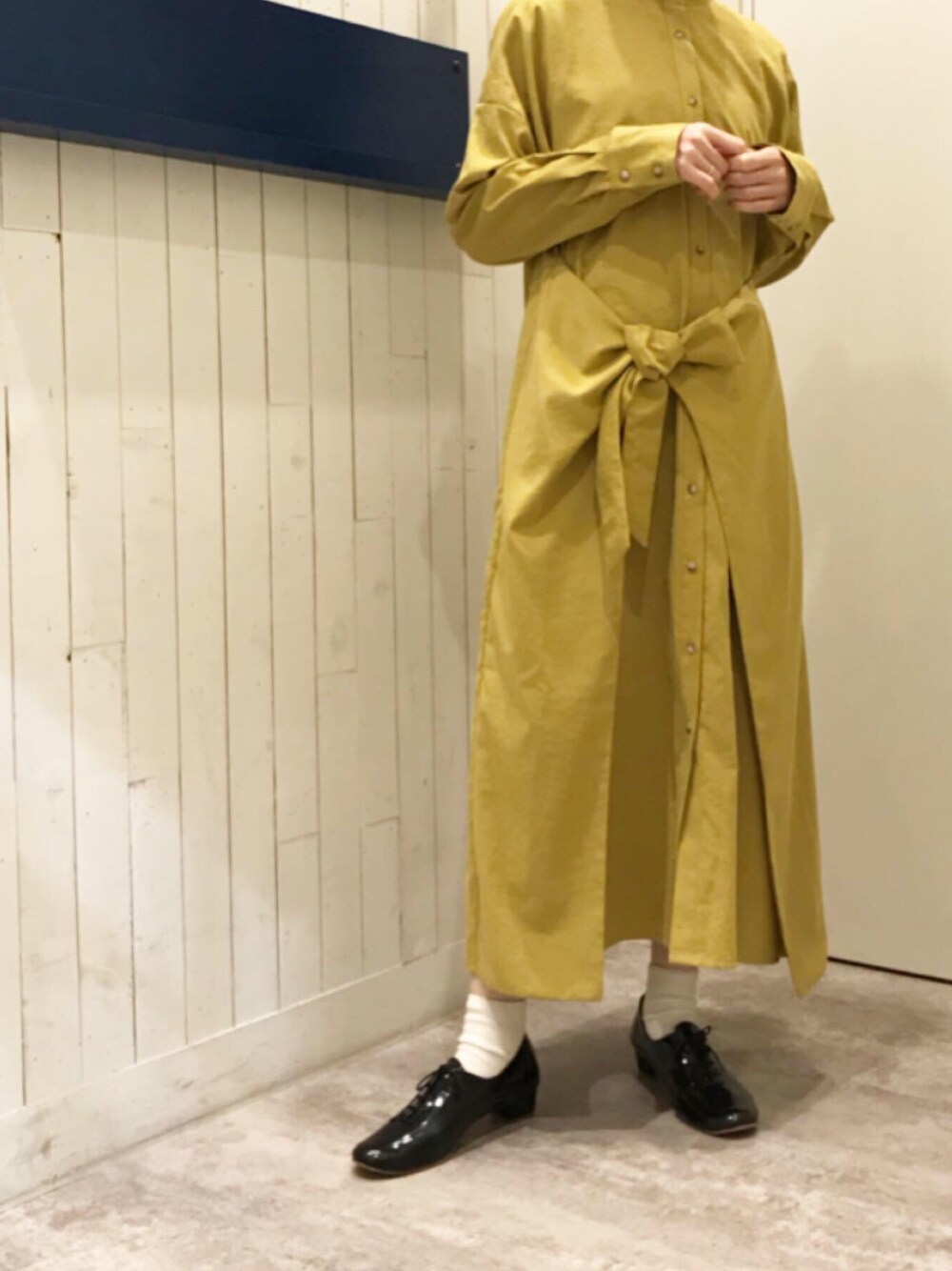 pullffy イオンモール福津店(pullffyイオンモール福津店)のシャツワンピース「ピーチツイル デザインシャツワンピース」を使ったコーディネート
