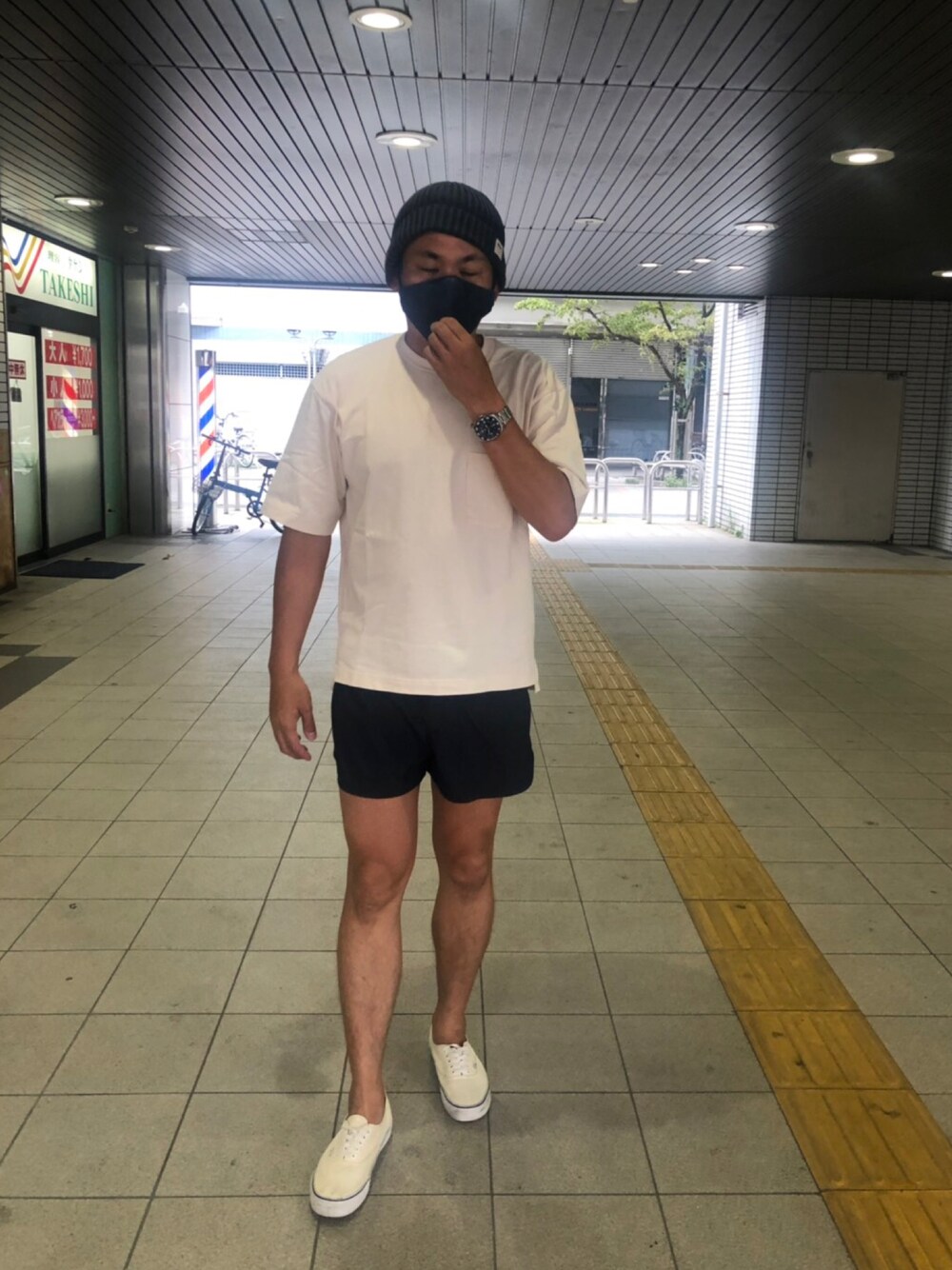 ちょっと短パンの丈が短かったかな。それでもリゾート感が出るのでアリやけど、地元ではナシか?