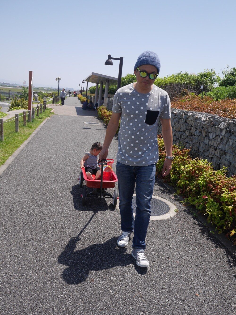 伊丹スカイパークにてラジオフライヤーに乗せた娘と。