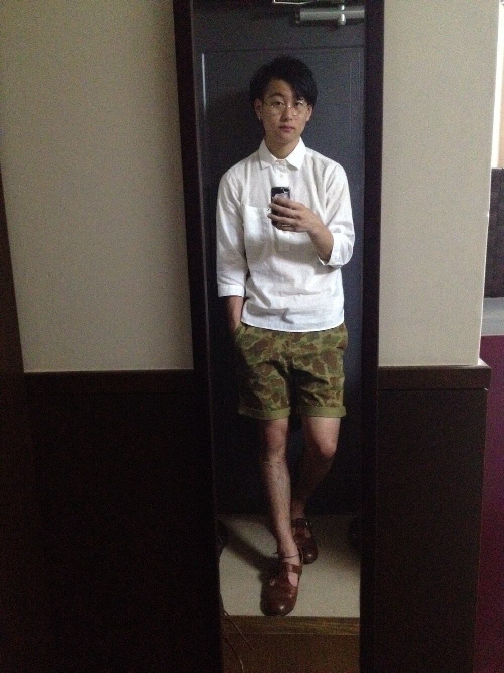 AKOのメガネ「ゴールド縄手丸め」を使ったコーディネート