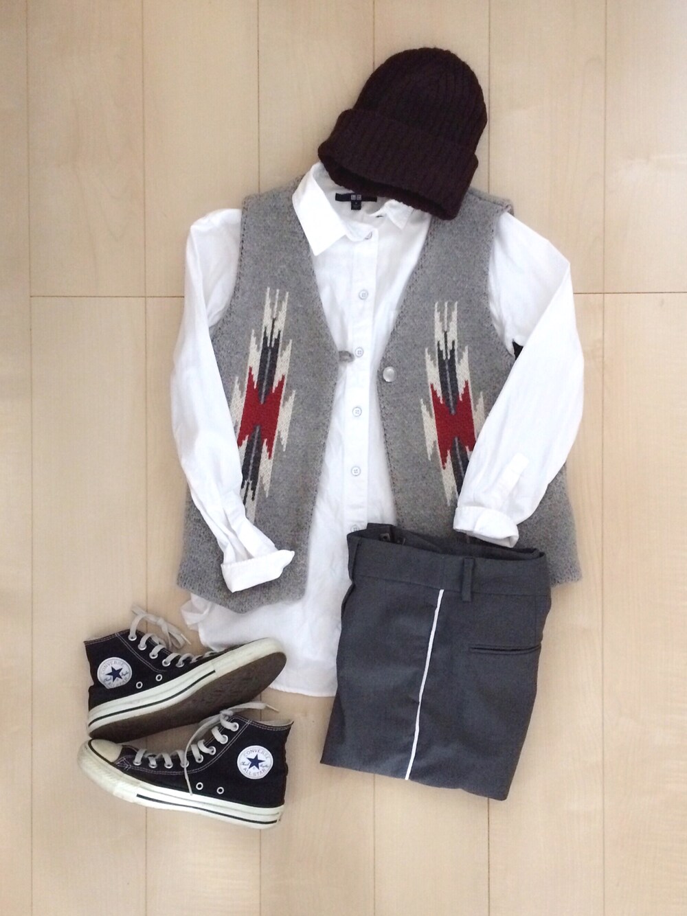 さんだるのベスト「圧縮ウール100ナバホベスト【niko and ...】」を使ったコーディネート