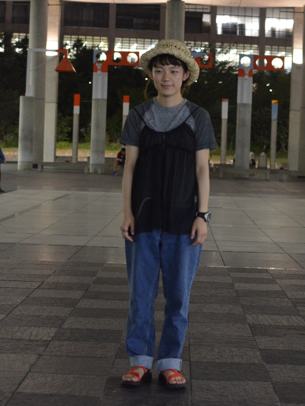 麦わら帽子かぶって、麦わら帽子買いに行きました。 買ってすぐに新しい方かぶりました。また 服は全部古着でした。