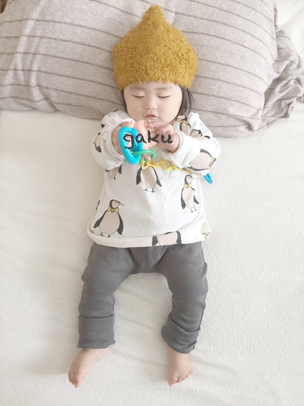 モケニット♡ 帽子たくさん買ったけど 嫌がる。。。 根気よくかぶせたら慣れるかな?←