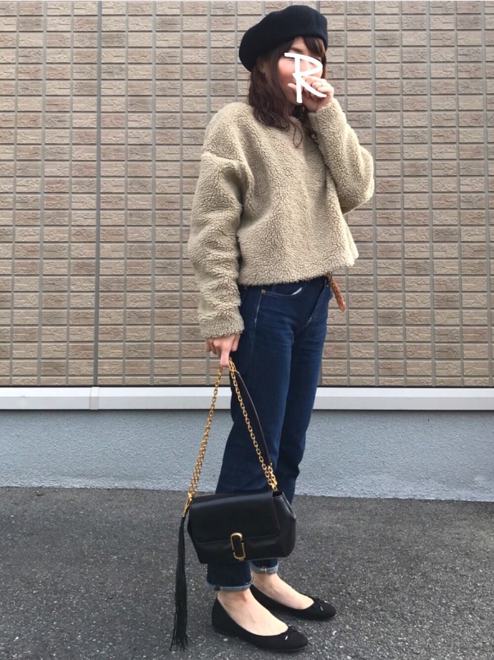 もこもこコーデ。 もう最後かな。 GU のペタンコシューズはコスパ良くてお気に入り♡靴下×コーデも楽しみたい。
