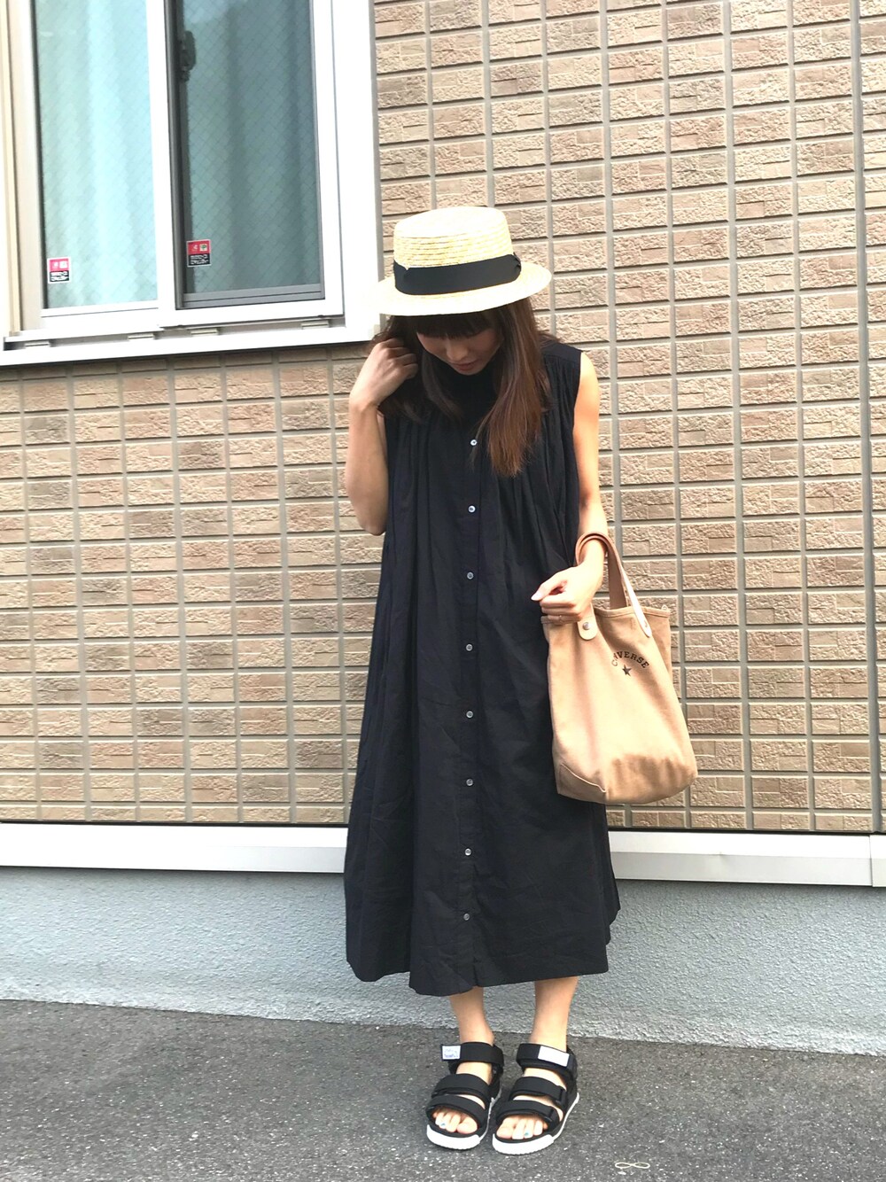 ぷわのワンピース「DOORS コットンボイルノースリーブワンピース」を使ったコーディネート