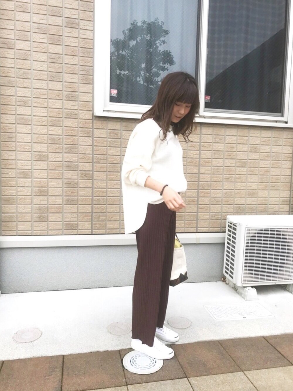 今季のリブパンツは秋っぽさが出せてお気に入り。