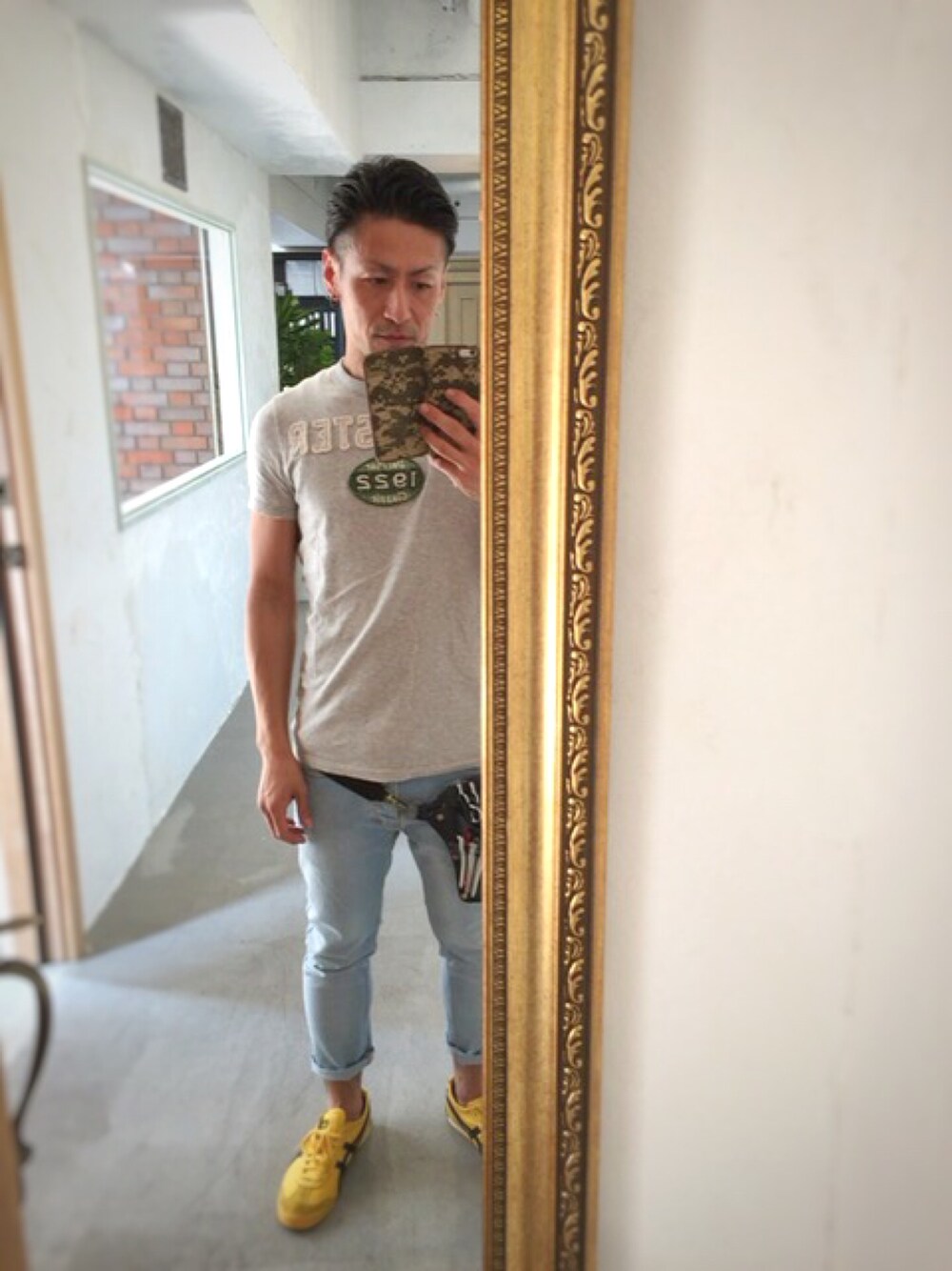 今日はどんよりな天気ですね(´・_・`) 頭が痛い(´・_・`) 髪もさっぱり切ったので、顔も出ちゃってます(^_^) トップス……好きな方は多いかな? 懐かしのホリスターのTシャツ パンツはUNIQLO……UNIQLOは侮れません(^_^)