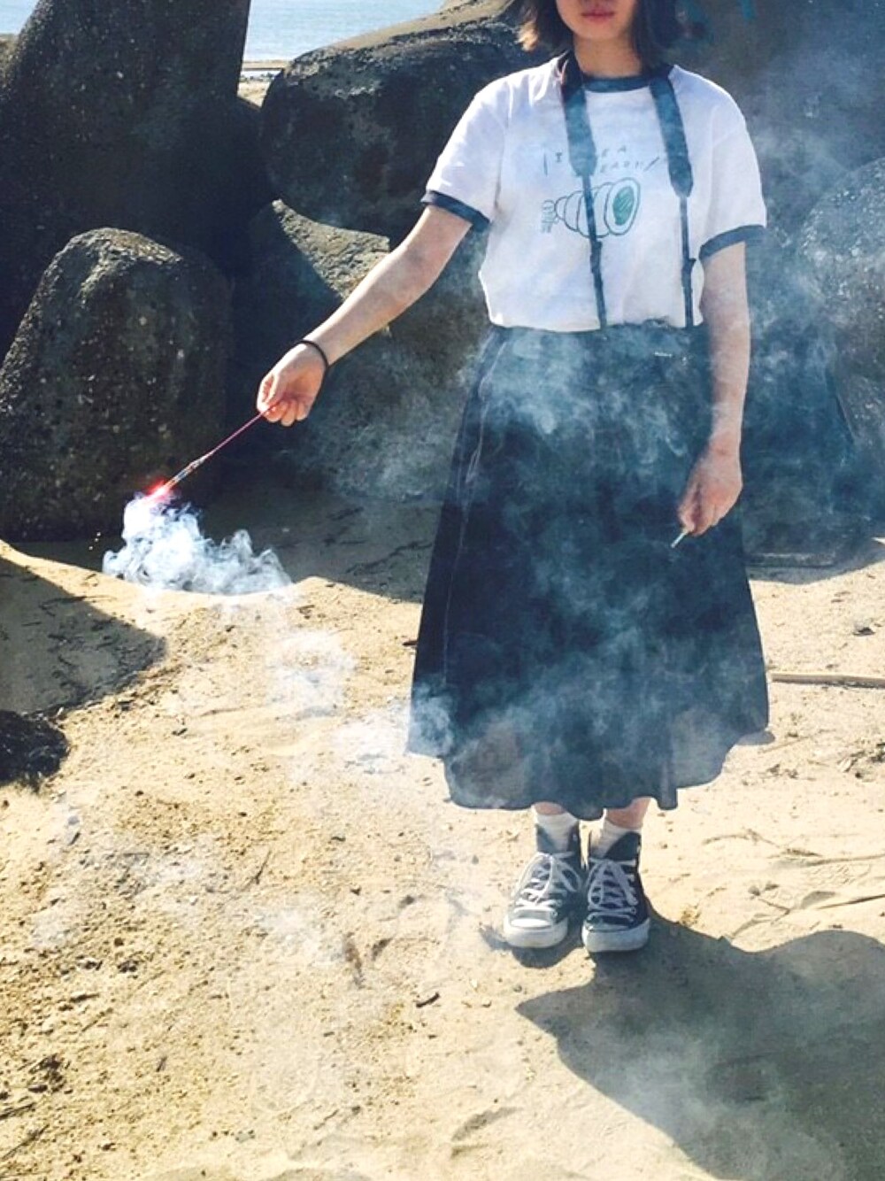 昼間に花火をした時の服