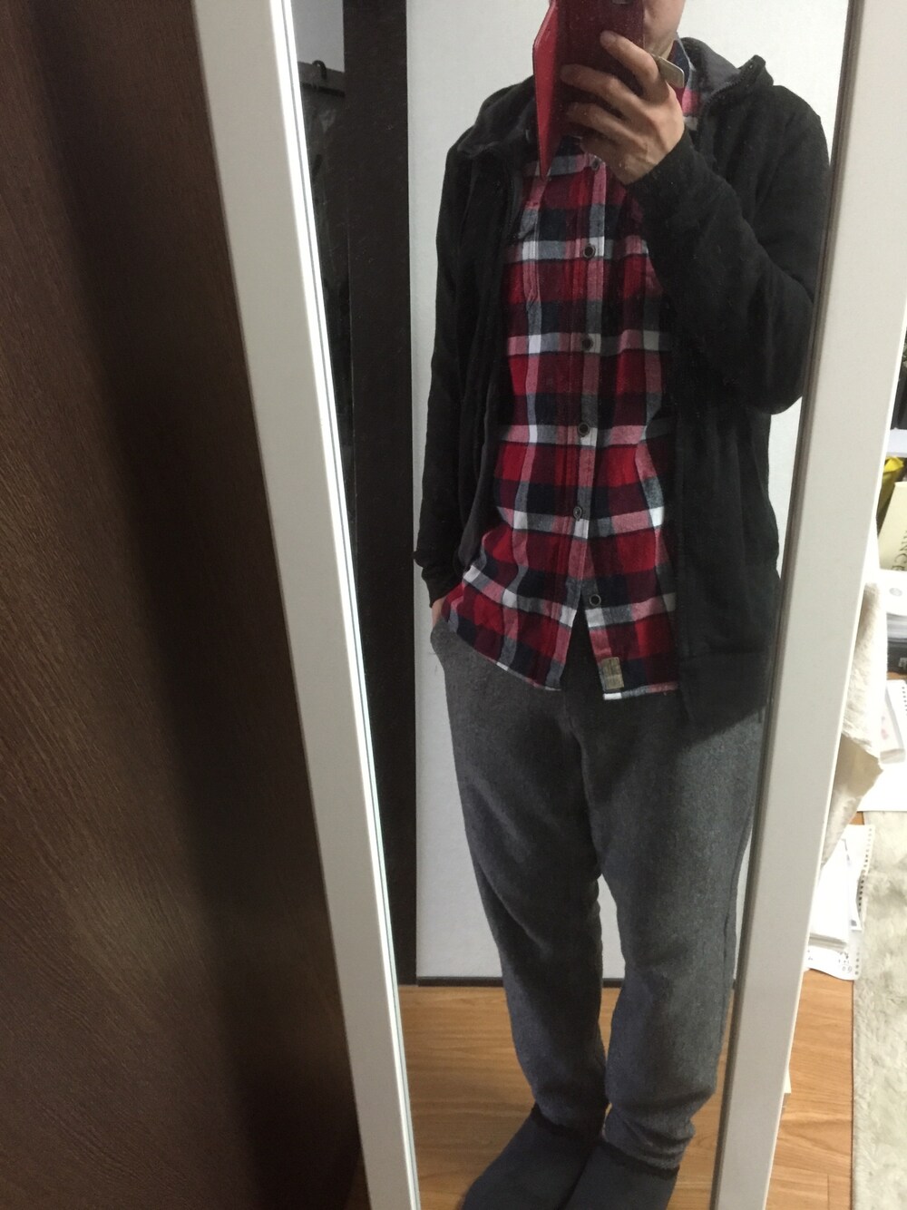 部屋着。ラフな感じで大掃除(^^) H&Mで買った室内ムートンシューズがあったかくて助かる〜🎶