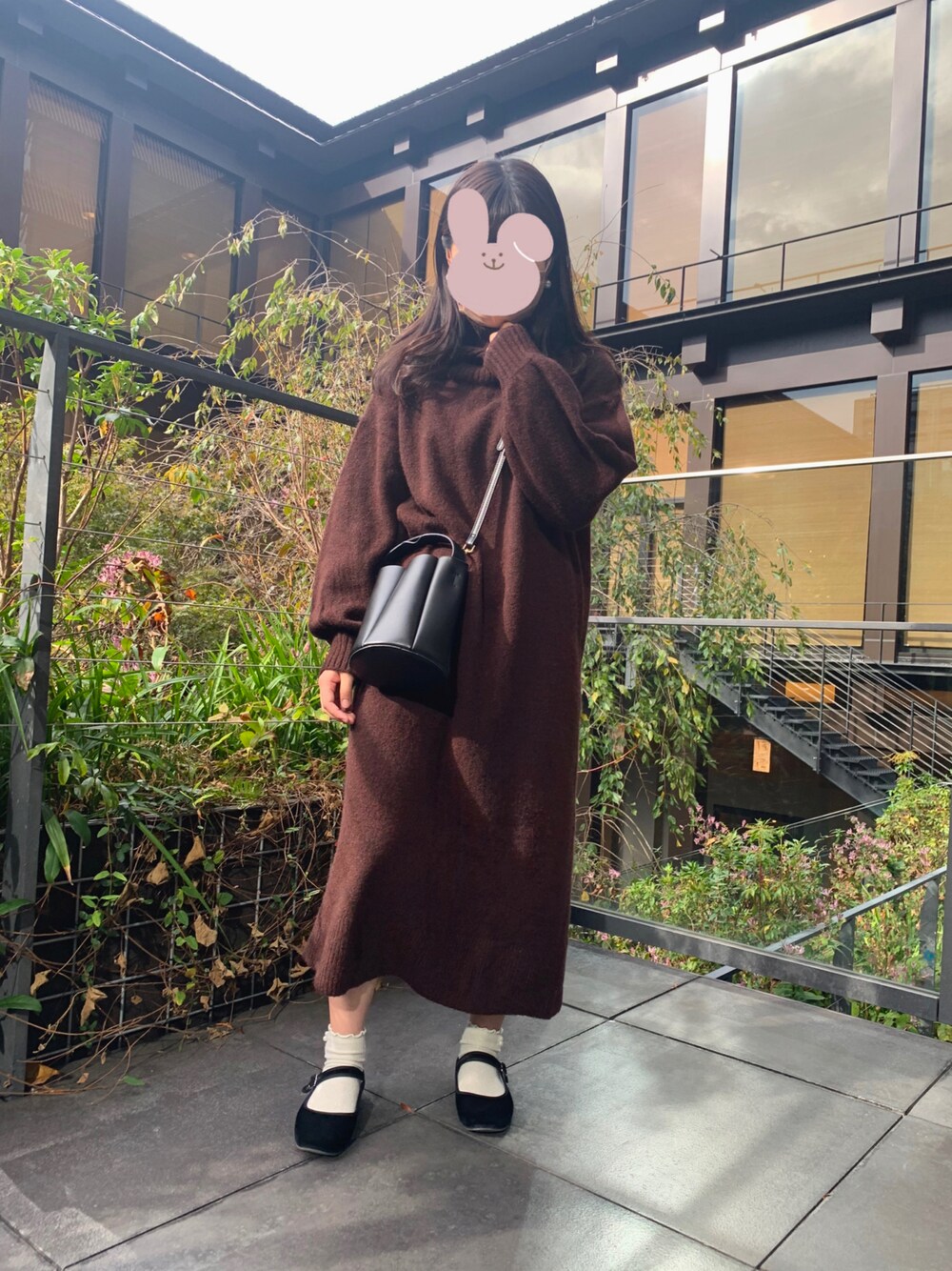あたたかみのあるブラウンのニットワンピースでほっこり秋コーデ🍁