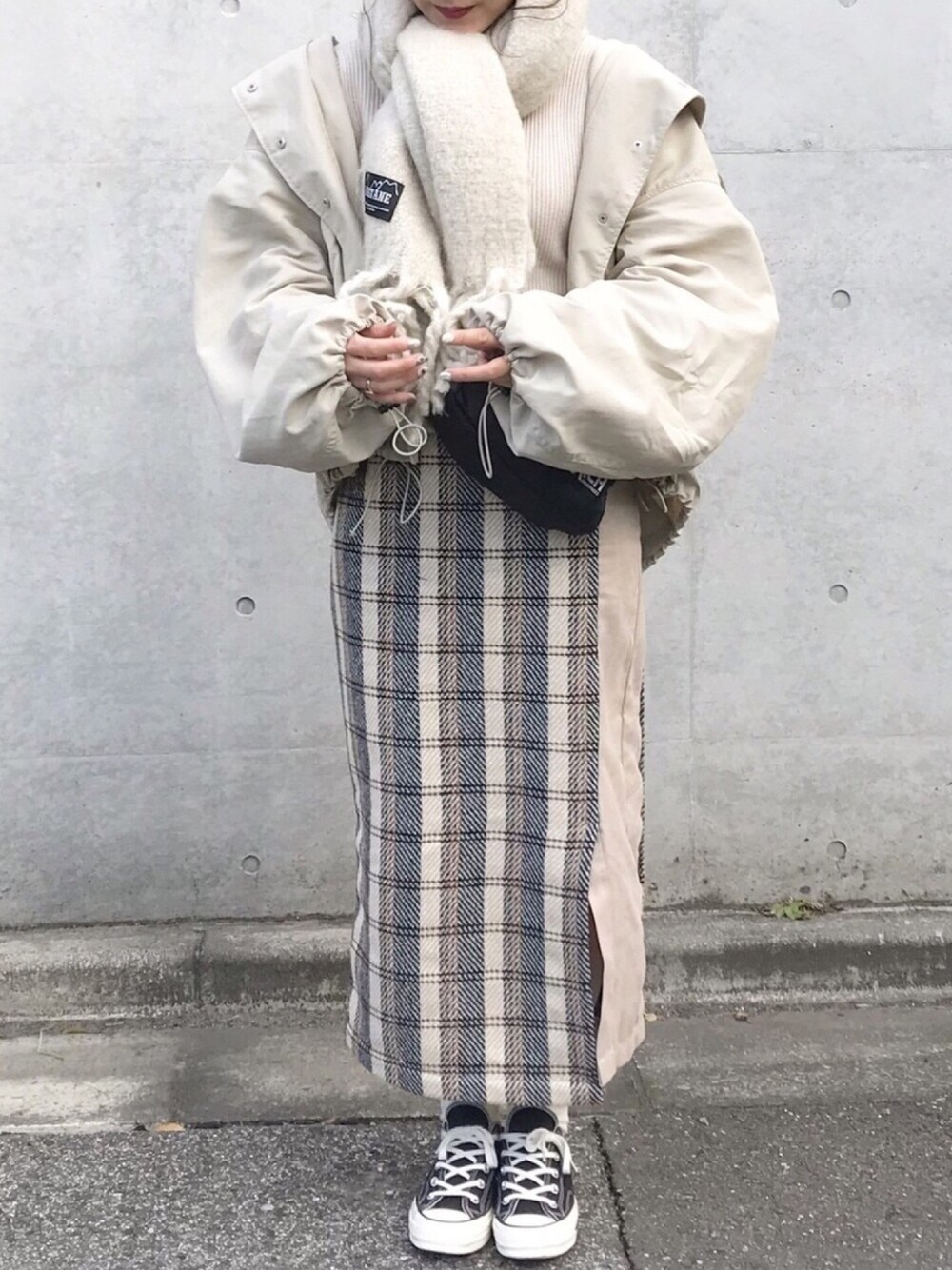 トップスとスカートはmystic マフラーとアウターはkastaneです❤︎ とてもお気に入りのコーデです😻 Instagram【@_com_gi】