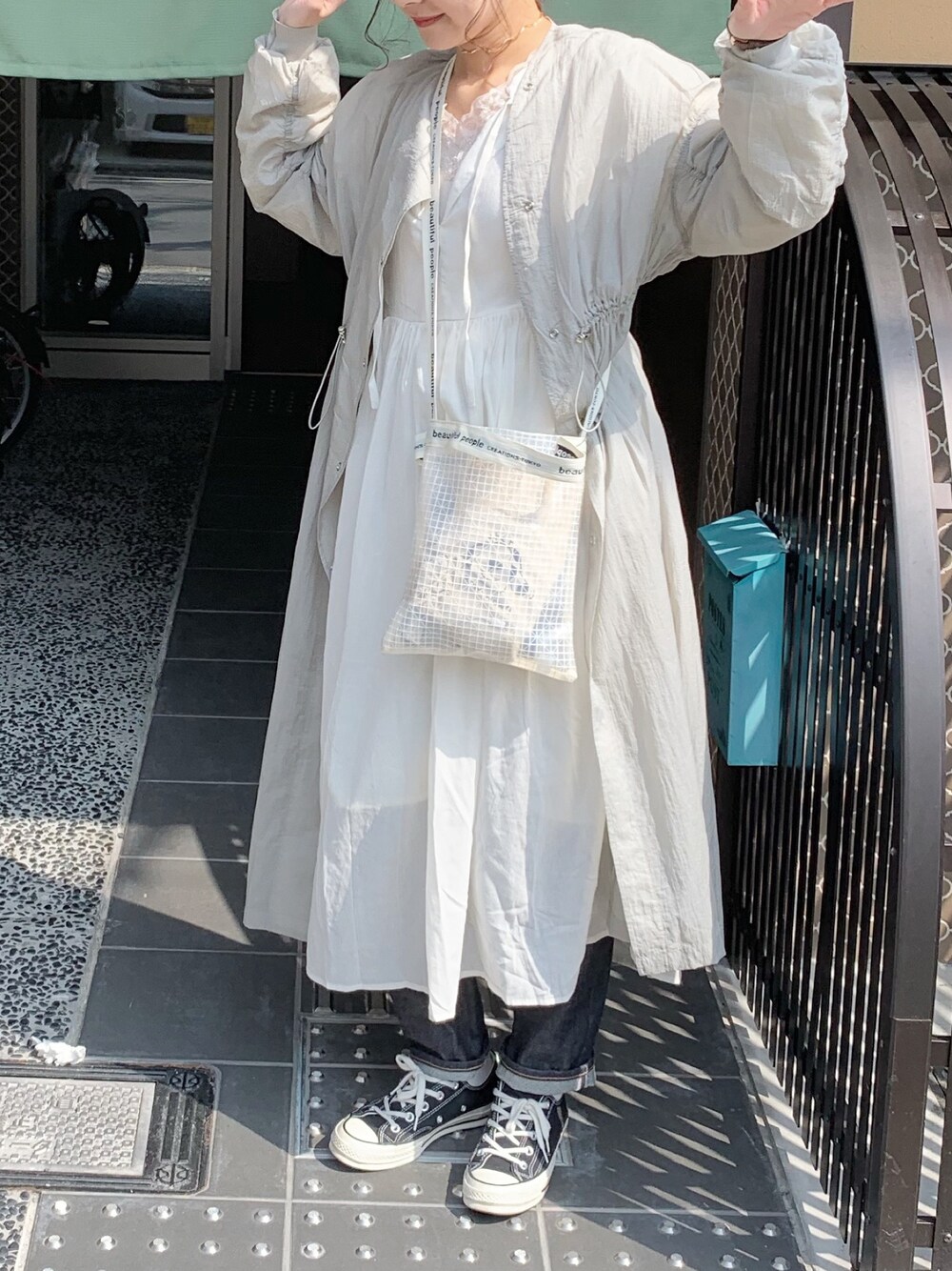 kanonのワンピース「ヨークギャザーボリュームワンピース」を使ったコーディネート
