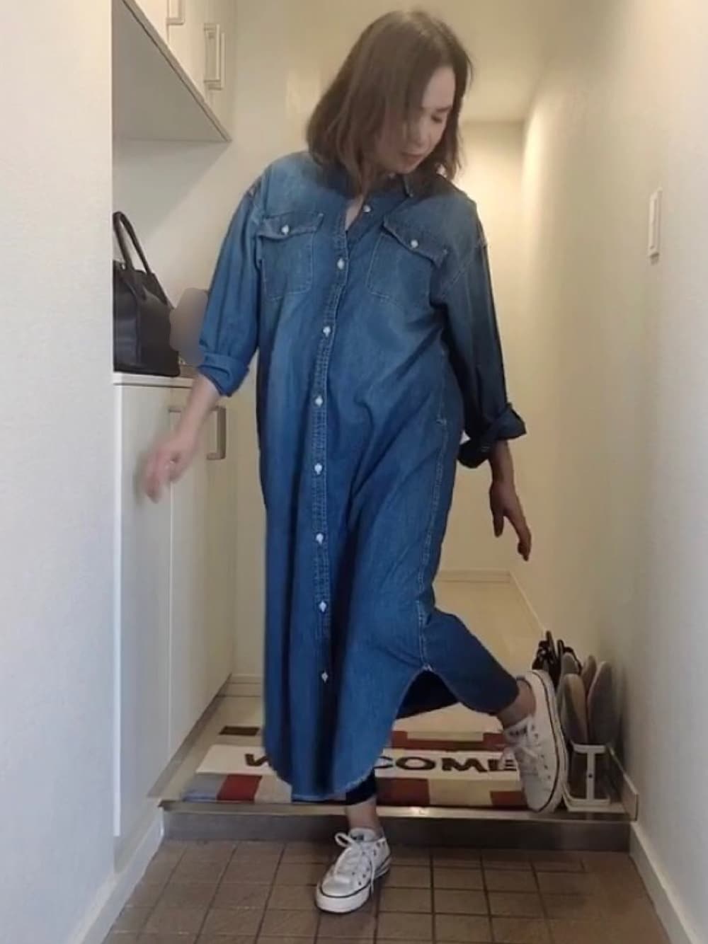 tocchiのワンピース「デニムロングシャツワンピース」を使ったコーディネート