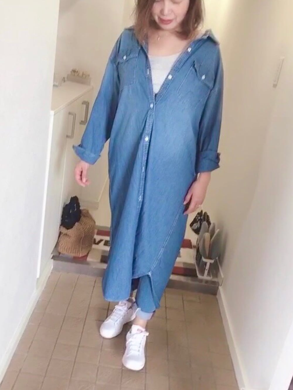 tocchiのワンピース「デニムロングシャツワンピース」を使ったコーディネート