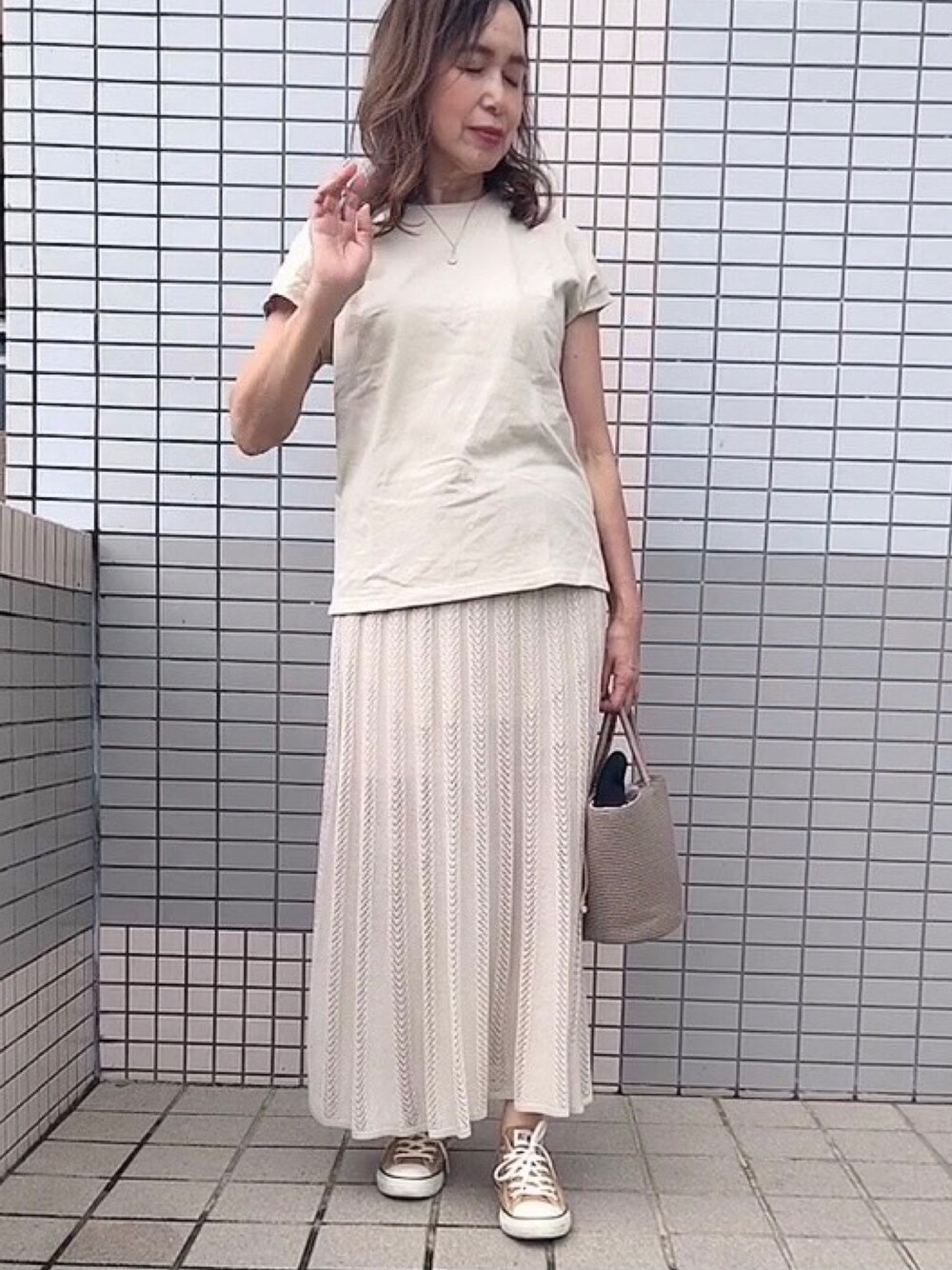 tocchiのTシャツ/カットソー「スーピマコットンリブクルーネックT(半袖)」を使ったコーディネート