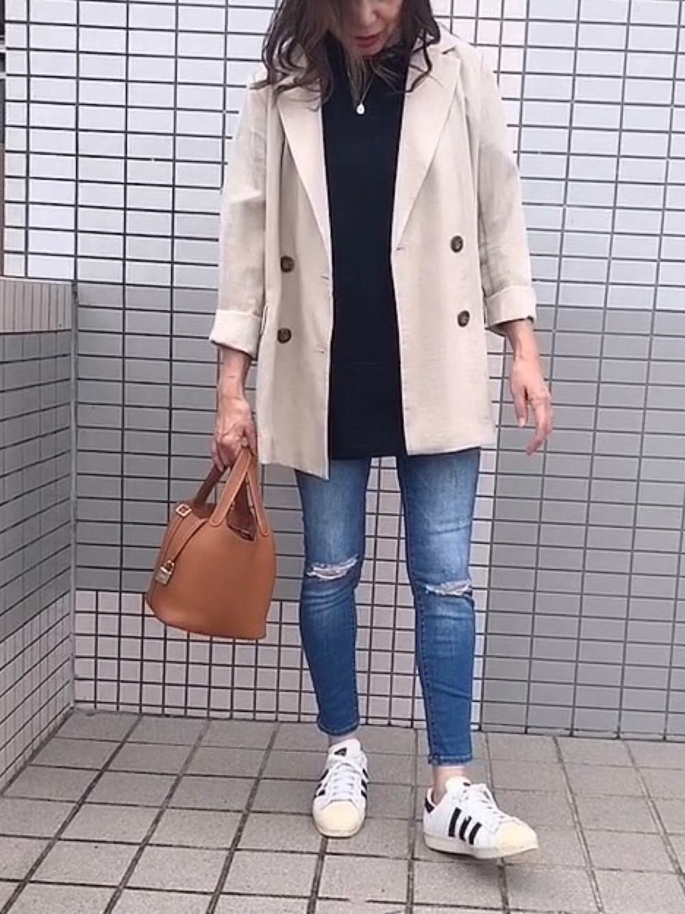 tocchiのテーラードジャケット「【Sシリーズ対応】◆麻調合繊Wブレストジャケット」を使ったコーディネート