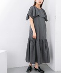 ブラック系のワンピースを着用したレディースの秋コーディネートの1枚目の写真