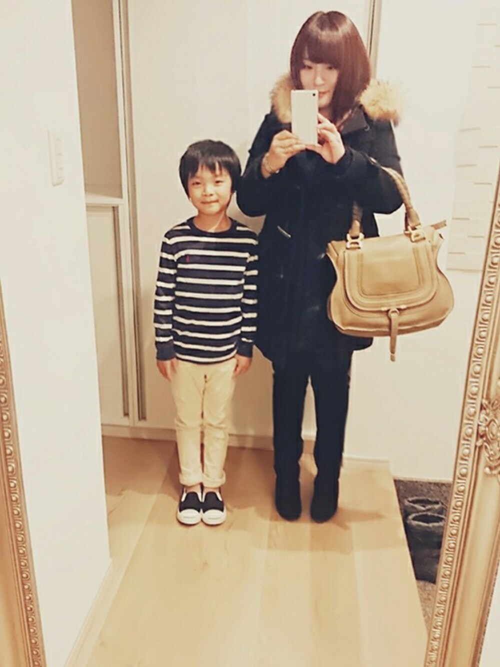 ネイビーリンクコーデ❤ 息子120㎝。母153㎝。久しぶりにちゃんと並んで撮ったら、 キャー 差が‼💦
