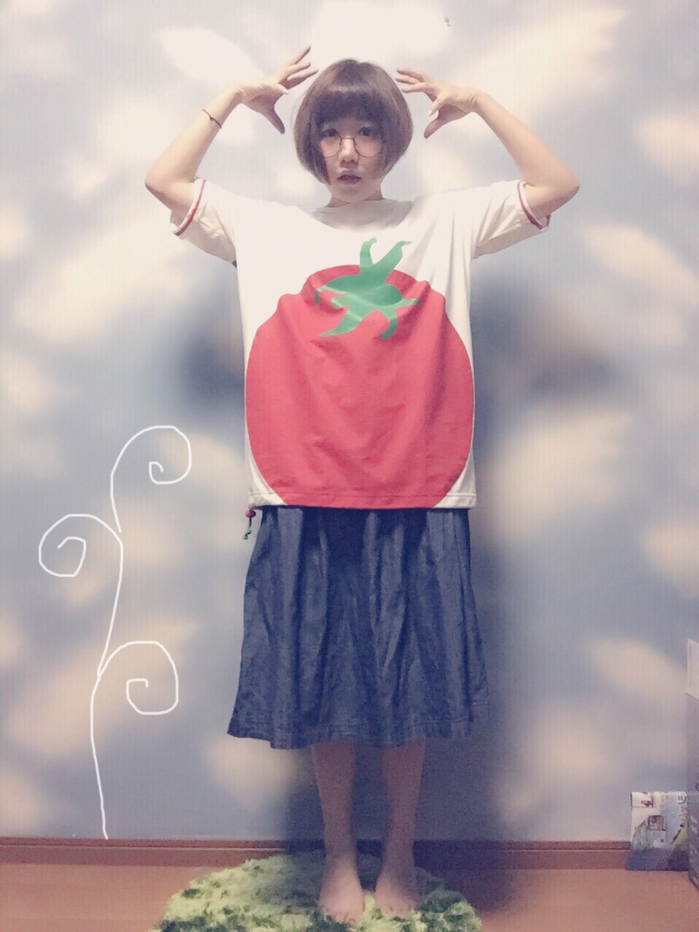 2016.08.06 今日はトマト。 久しぶりに着た。 髪の毛も結構短くなったのです。 キャップが被りやすくなってるんるん。