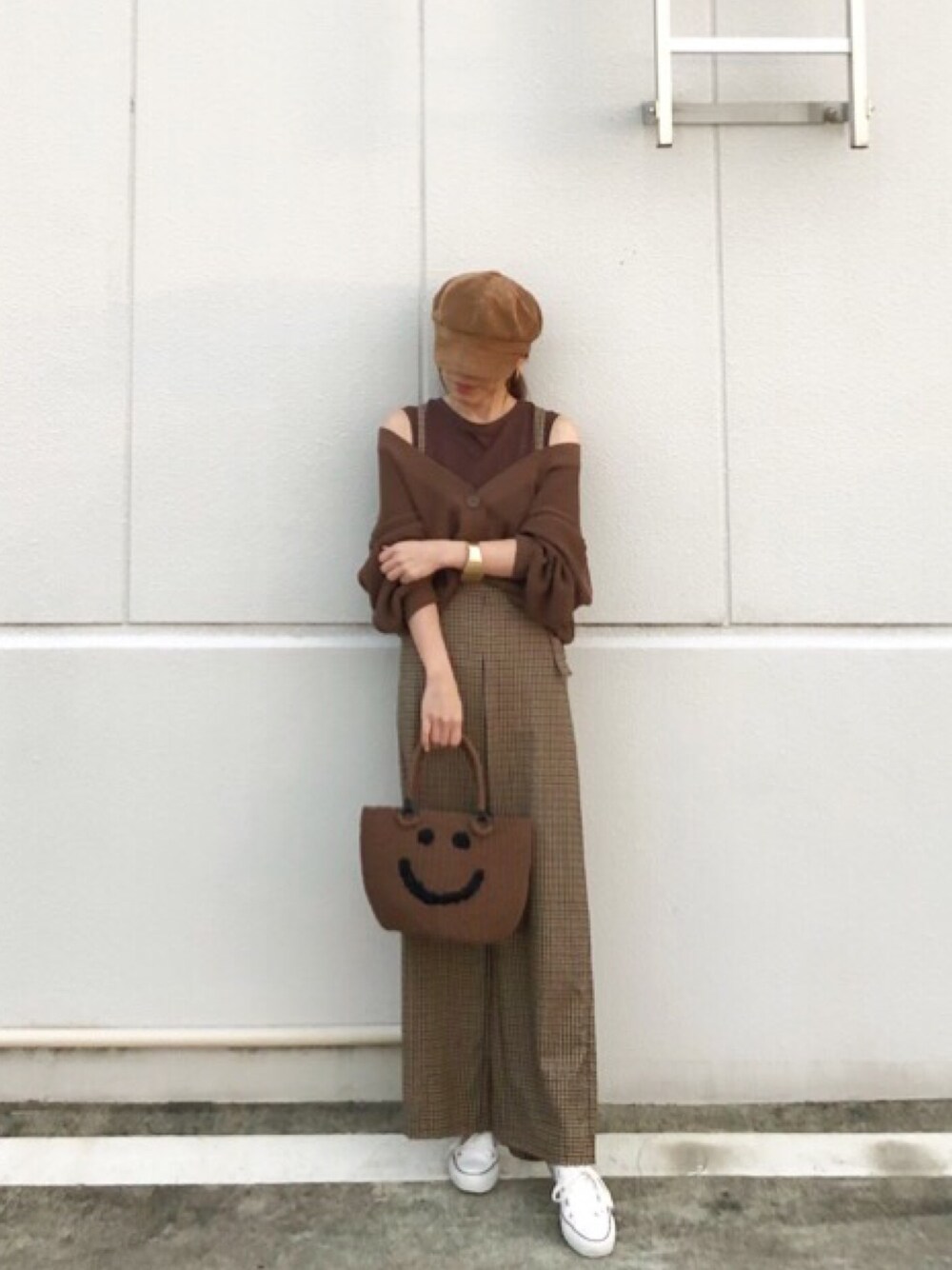 しまむらのカーデ着回し力抜群😊 GUのカーデも限定になったから買っちゃおうかな?? ワイドパンツはGUのサスペンダー付きワイドパンツ♡