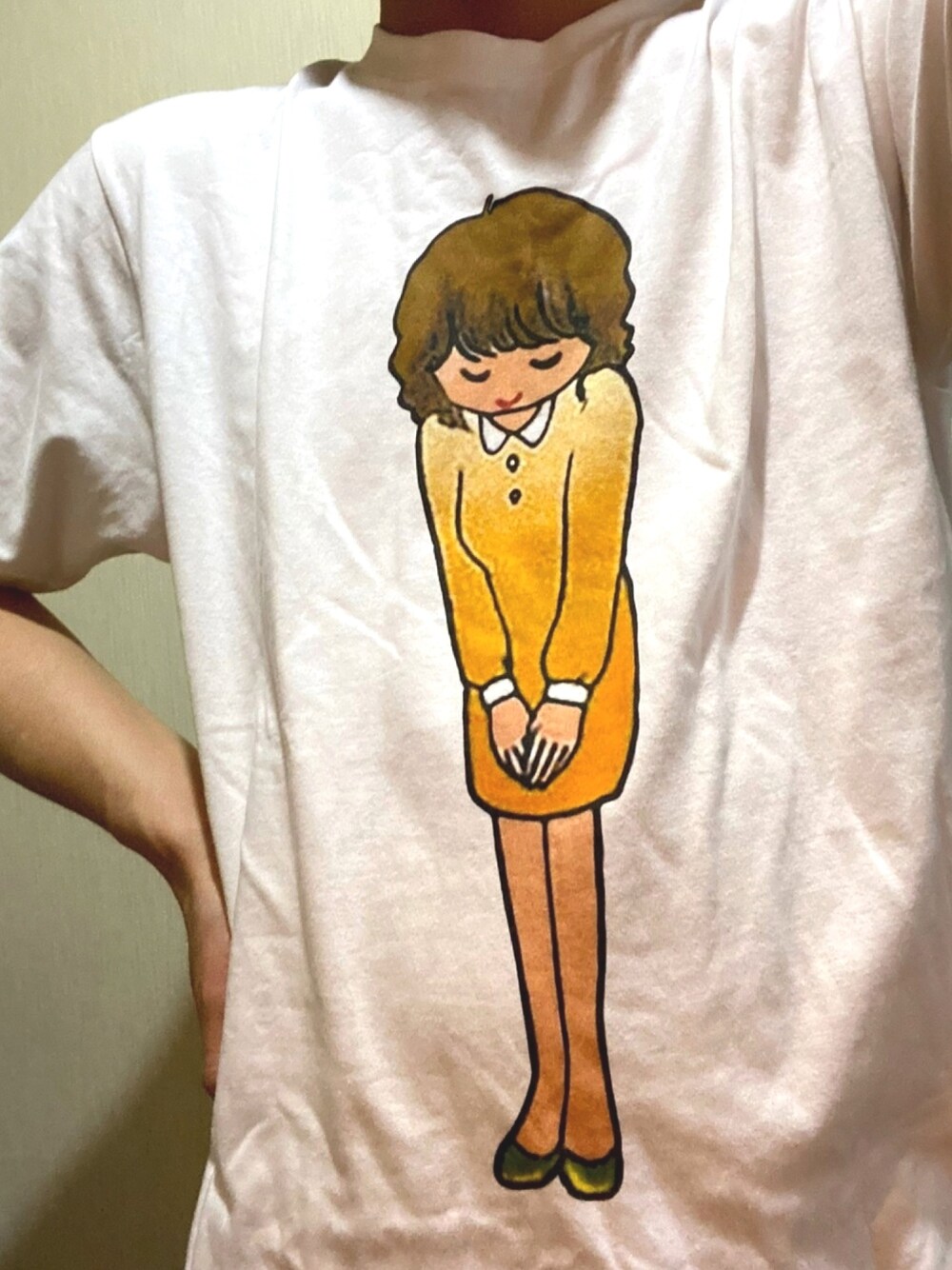 バンドマン御用達、音楽機材通販大手サイト・サウンドハウスのお姉さん(通称おじきちゃん)Tシャツ。プレゼントキャンペーンで当たらなかったことを嘆いていたら知り合いがプレゼントしてくれた(感謝!) プリント画像の解像度が粗い(多分画像素材はgif)ところが味があっていい。