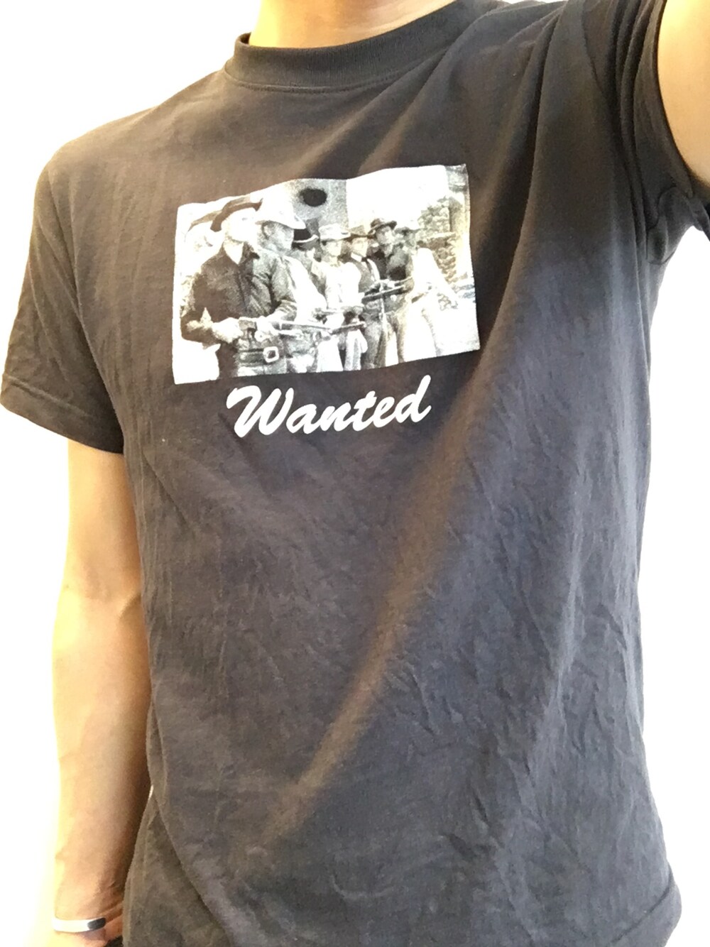 ホンダレディとMAGUMI AND THE BREATHLESS のツーマンライブT。黒に近いチャコールグレー。2バンド合わせて7人だったので「荒野の七人」ネタ。