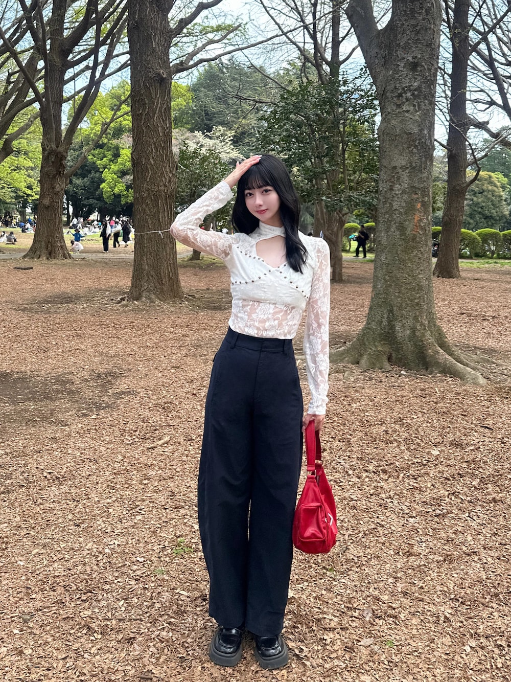 桃(ROOPTOKYO)のTシャツ/カットソー「Studs Ribbon Lace Tops / スタッズリボンレース トップス」を使ったコーディネート
