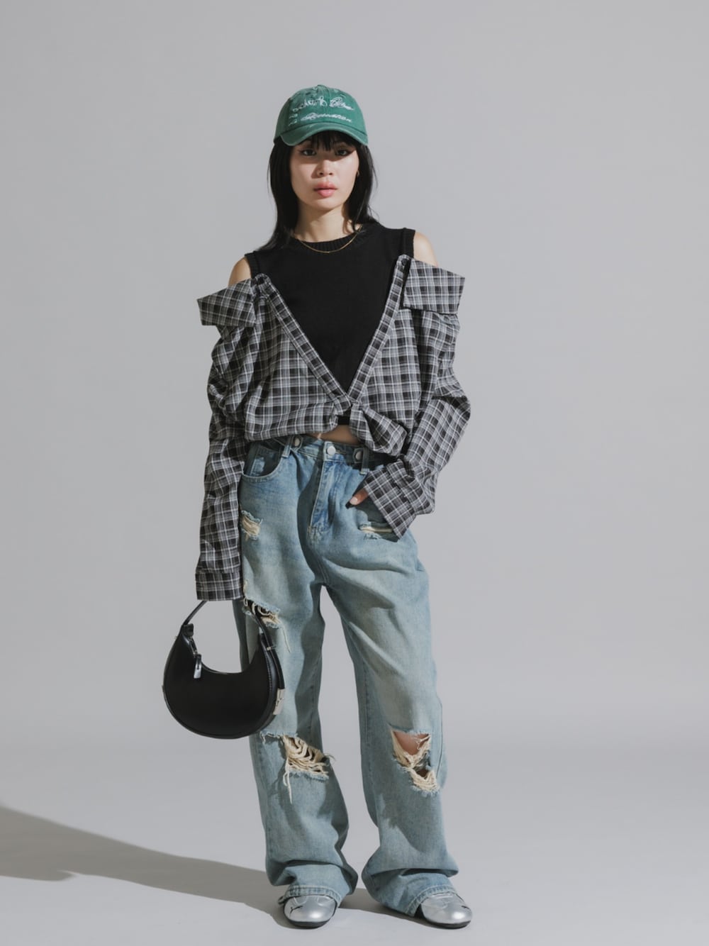 桃(ROOPTOKYO)のシャツ/ブラウス「Y2K-Style Fake Layered Check Shirt / Y2K風 フェイクレイヤードチェックシャツ」を使ったコーディネート