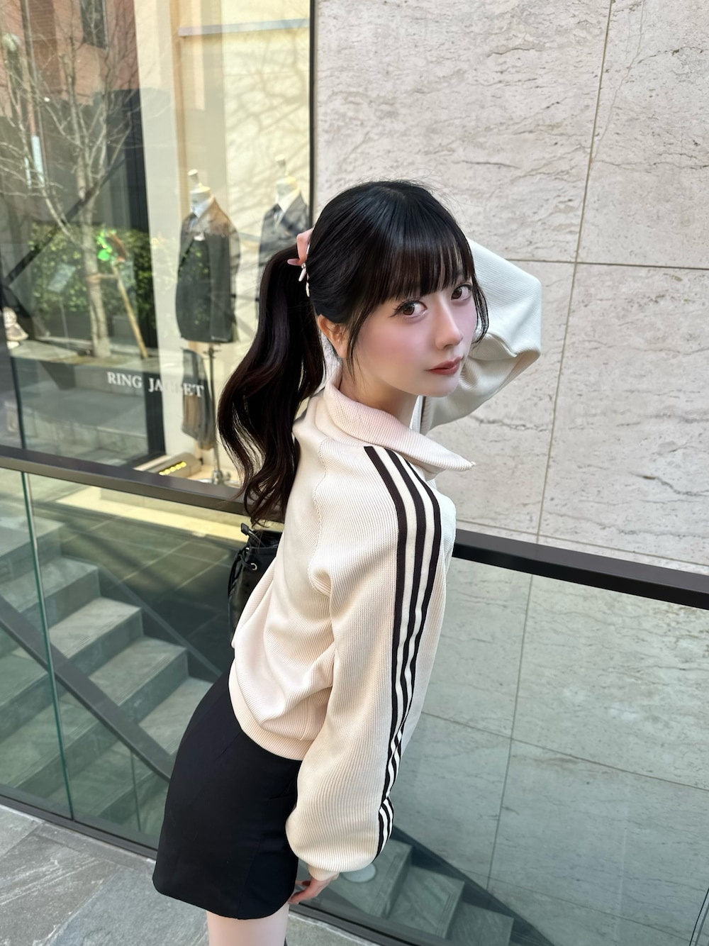 桃(ROOPTOKYO)のニット/セーター「adidas/アディダス KNITBALOON TT スリーストライプス ニットトラックジャケット 2026年春夏」を使ったコーディネート