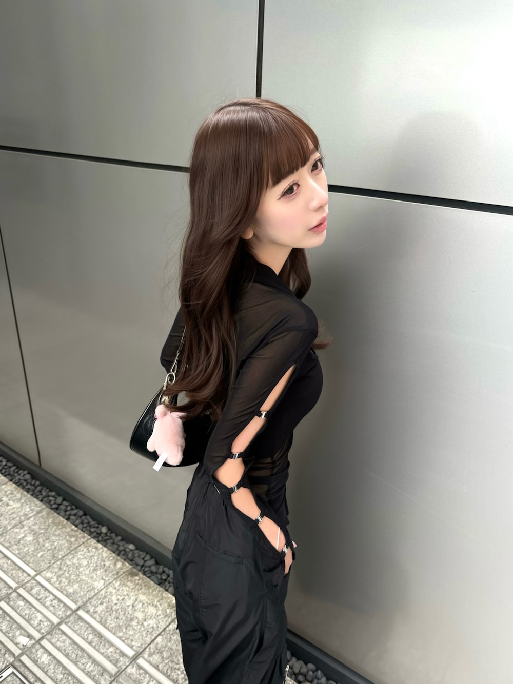 桃(ROOPTOKYO)のショルダーバッグ「Metal studs Gather Shoulder Bag / メタルスタッズギャザーショルダーバッグ」を使ったコーディネート