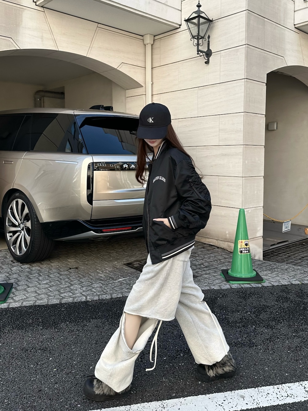 桃(ROOPTOKYO)のブルゾン「Calvin Klein/カルバンクライン LS UNFILLED NYLON TIPPED GRAPHIC BOMBER JUNG KOOK / ジョングク着用商品 MA-1 ストリート カジュアル ライトアウター 羽織り 2026年春夏」を使ったコーディネート