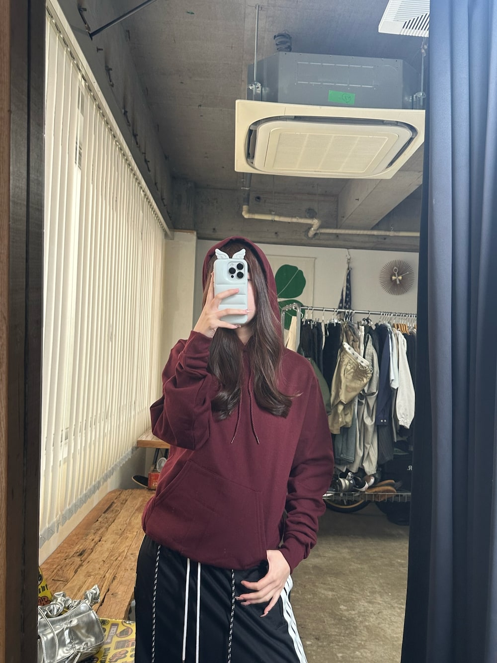 桃(ROOPTOKYO)のパーカー「Champion/チャンピオン HOODED オーバーサイズ プルオーバーパーカー 袖ワンポイント 刺繍ロゴ フーディ 2026年春夏」を使ったコーディネート