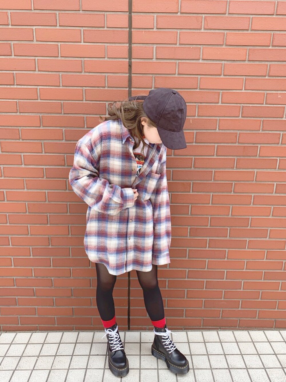 全身コーデ マーチンおろしました。やっと。 紐は元のからホワイトに変えてます。 グルグル巻くのが可愛いの😌💕 身長低いので厚底で盛ってます笑