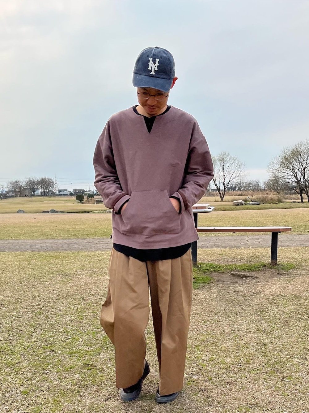 公園でストリート GU and beautiful people のワイドパンツ… 良き🫰🫰🫰
