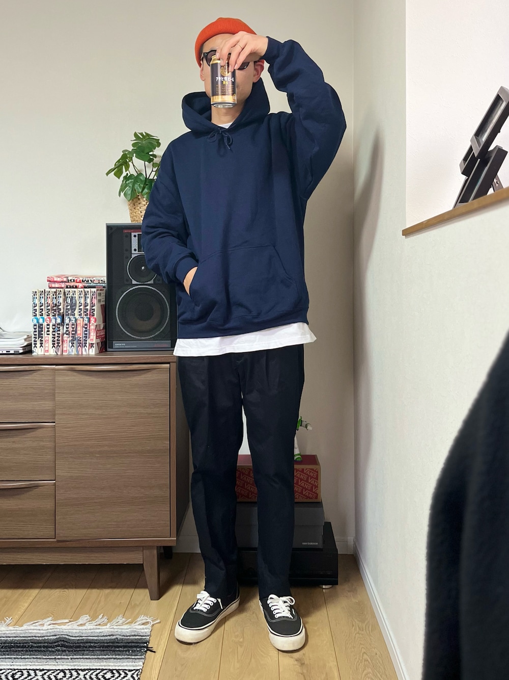 ネイビー×オレンジ🍊 パーカーはちょい大きめ着てます