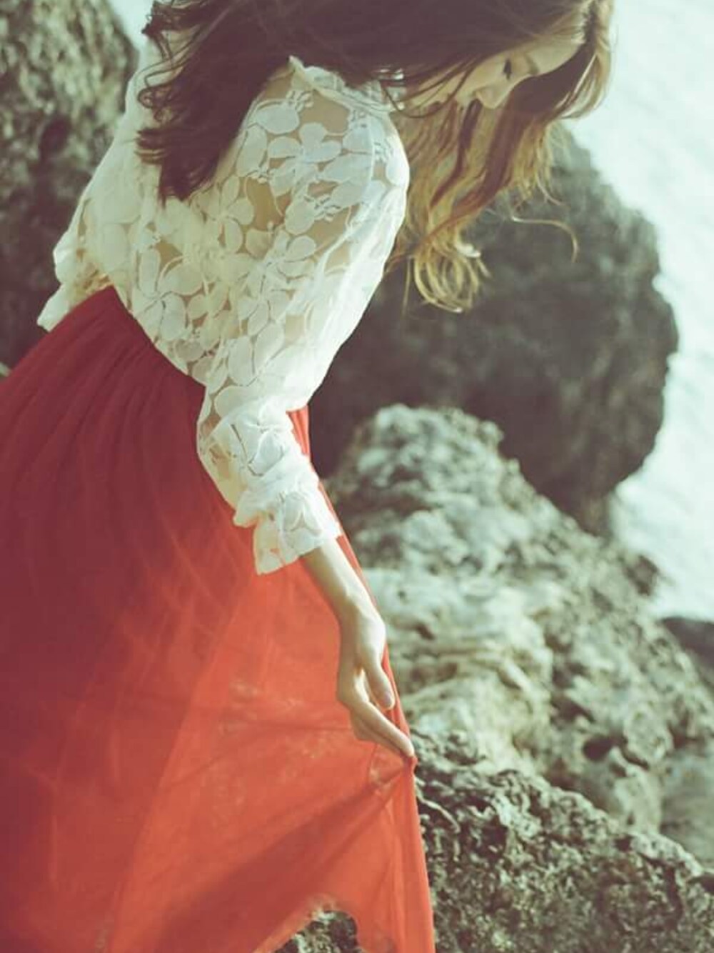 紡紗氣質加上花雕上衣 性感又不失典雅