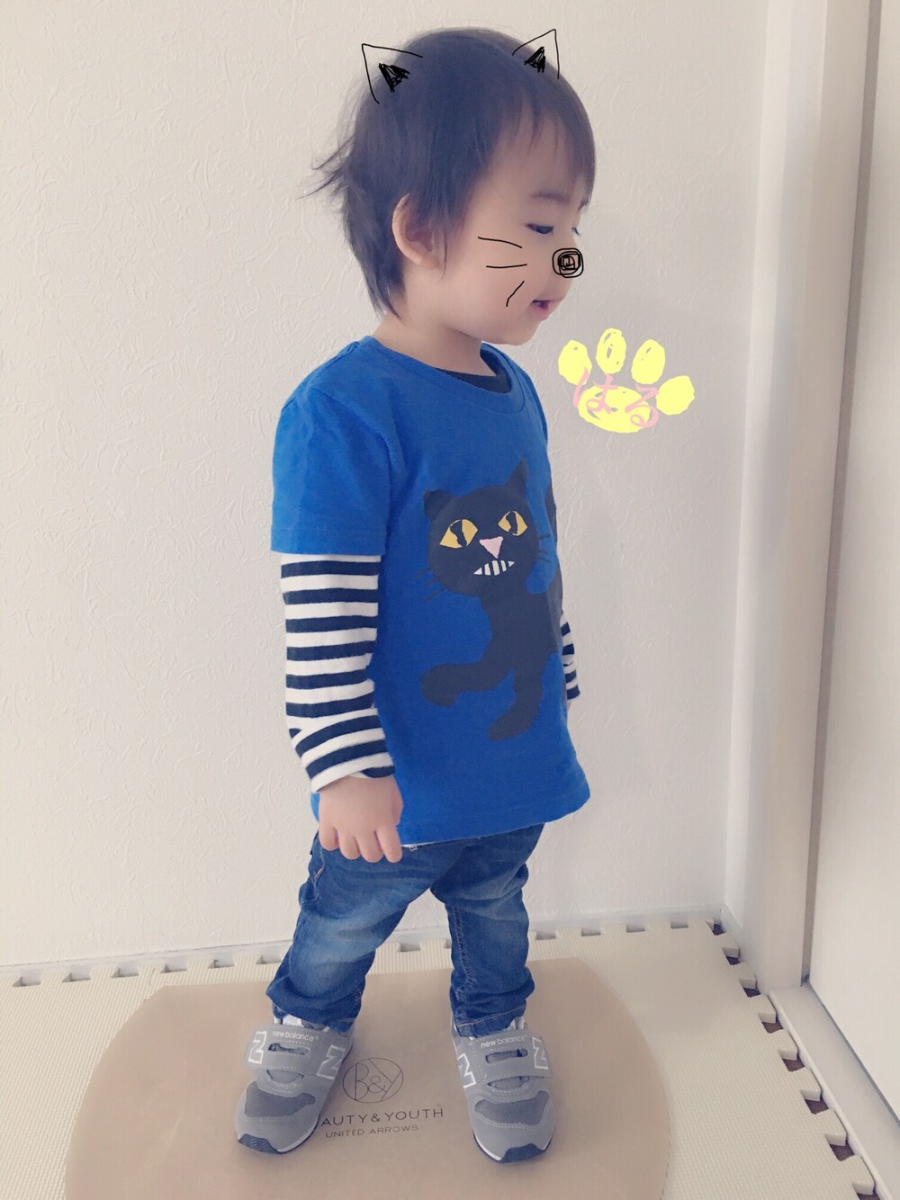 息子のお気に入りのにゃんにゃんTシャツ👻 『ねないこだれだ』の黒猫さん。 今日はお買い物ついでに 駄菓子屋さんへ🐶 お気に入りのお菓子をカゴにいれて とっても楽しそうでした👻💓