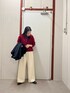 ニット ウール100%で暖かく そこまで厚手じゃないので かさばらなくておすすめです。 パンツ ゆったり履きたくてMサイズ着用してます。