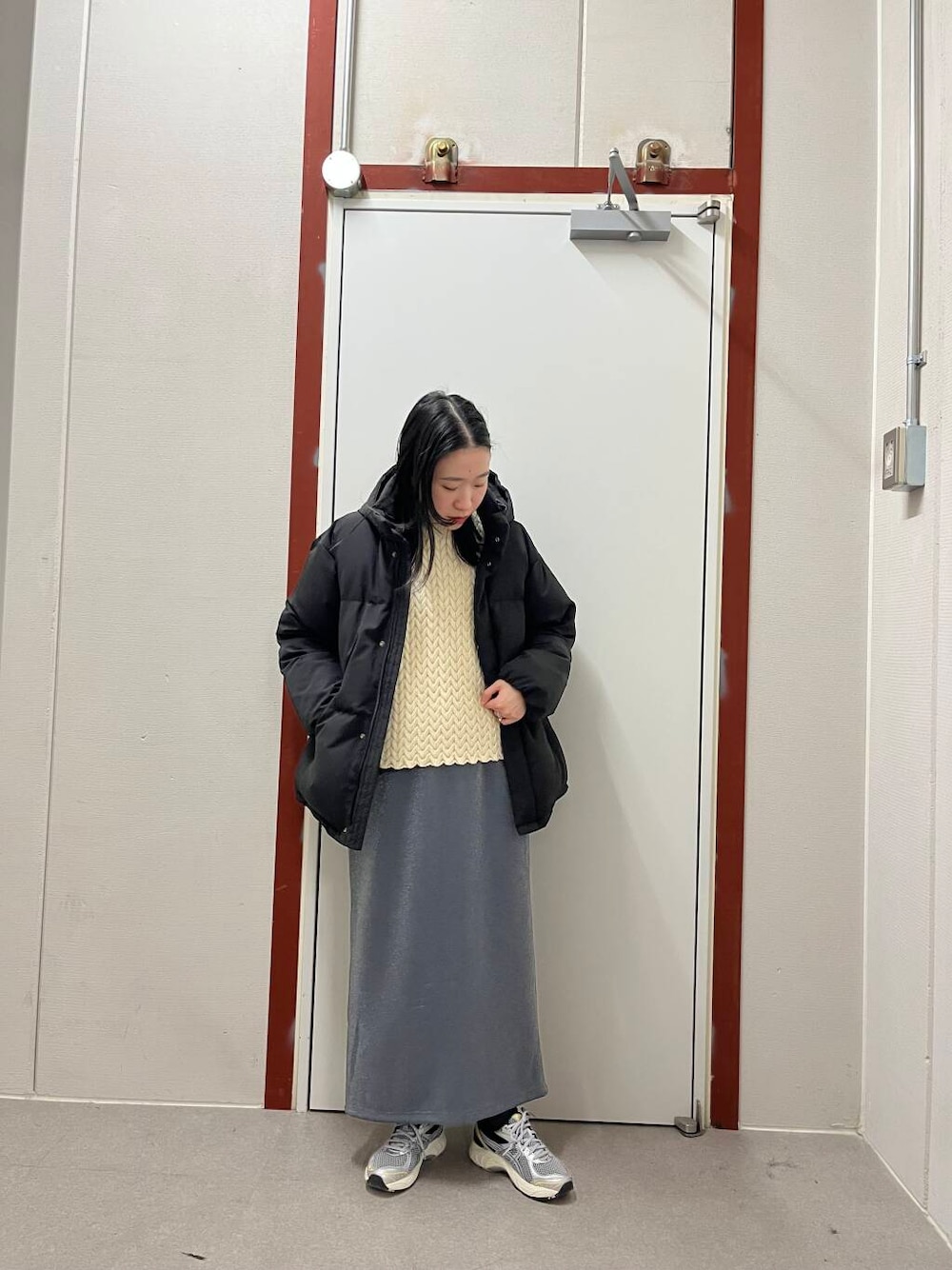 ダウンジャケット 161cmで着比べると Sサイズでちょうど良かったです! ミドル丈はお尻くらいまで長さがあるので 暖かさと動きやすさを兼ね備えてます!! 華やかなラメスカートで ホリデー感を出しました!!