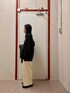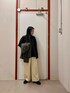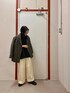 トップス お尻が隠れる丈感で 首元の開きも少なく オンオフどちらも使いやすそうです! パンツ サイズ感大きめでSでも ウエストと丈感共にゆったりです!